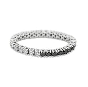 Flexible and stackable unisex ring with a minimalistic and timeless design made of recycled white gold, set with ethically sourced black and white natural diamonds.