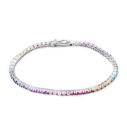 A colourful version of a classical and timeless piece, both precious and playful. Single row tennis bracelet with multicolour natural stones and secure clasp. Minimalistic design made of white gold and precious coloured stones with healing properties.
