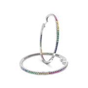 A colourful version of a classical and timeless piece, both precious and playful. A pair of hoop earrings with multicolour natural stones pave. A minimalistic design made of white gold and precious coloured stones with healing properties. "Color is a power which directly influences the soul" Kandinsky.